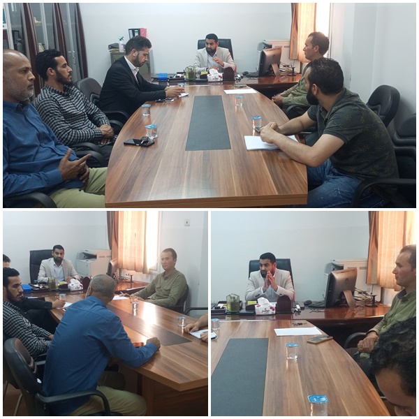 اجتماع عميد الكلية لمناقشة التجهيزات النهائية لتنظيم الورشة العلمية .