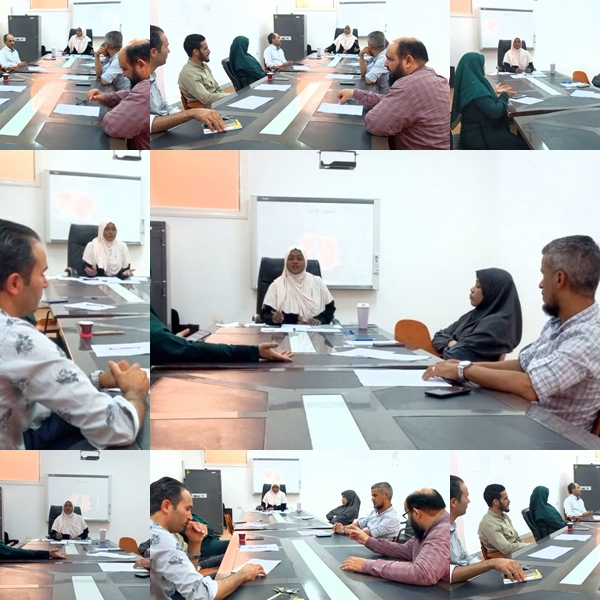 عقد السيد وكيل الشؤون العلميةبالكلية صباح اليوم الاربعاء الموافق :- 16-10-2024م اجتماع مع السادة رؤساء الأقسام العلمية، ومدير مكتب الجودة بالكلية حيث تناول الاجتماع متابعة سير العملية التعليمية لفصل الخريف 2024-2025م .