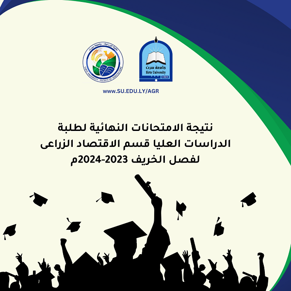 إعلان نتائج طلبة الدراسات العليا قسم (الاقتصاد الزراعي) للعام الدراسي 2024/2023م فصل الخريف .