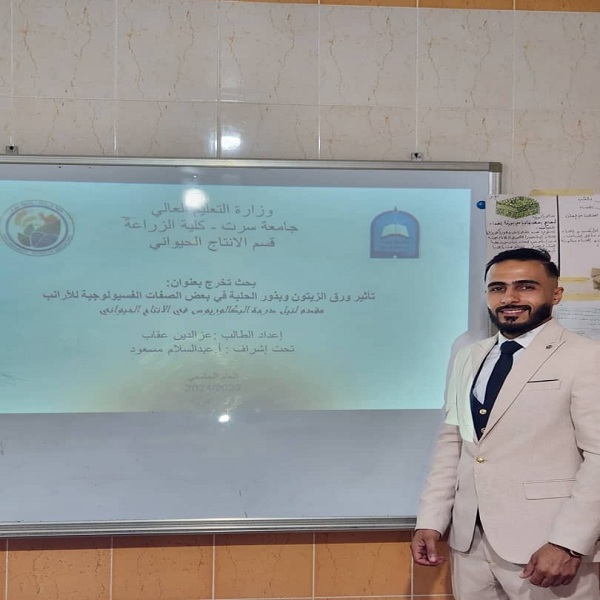 حيث تم مناقشة مشروع تخرج بعنوان : - تقيم ملوحة التربة وادي القبيبة بمدينة سرت .
