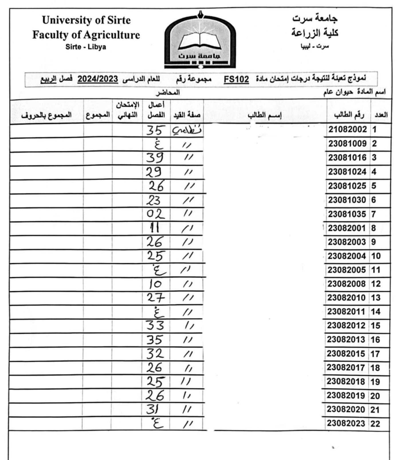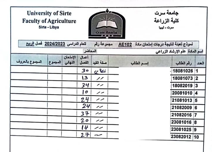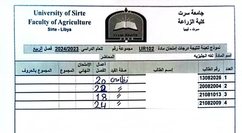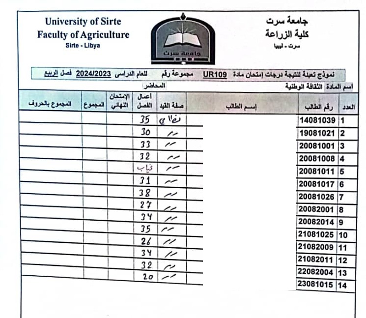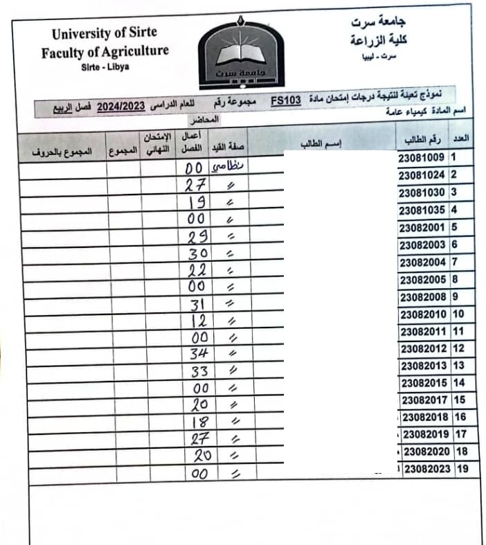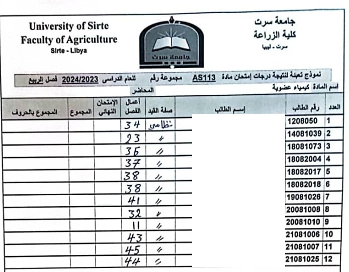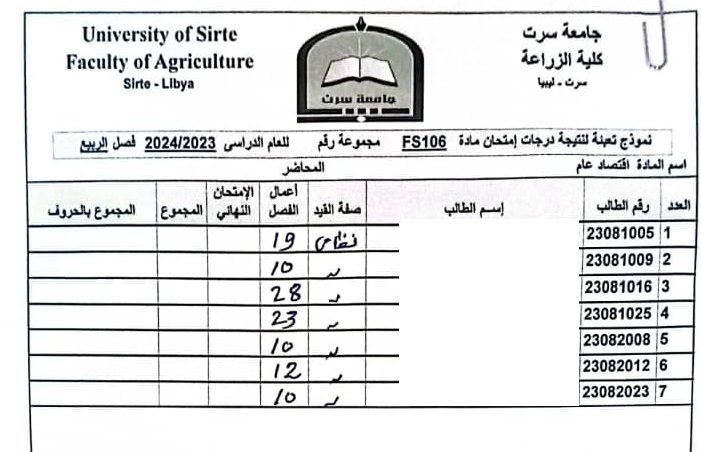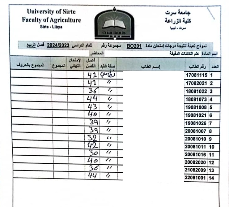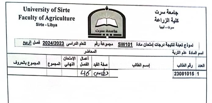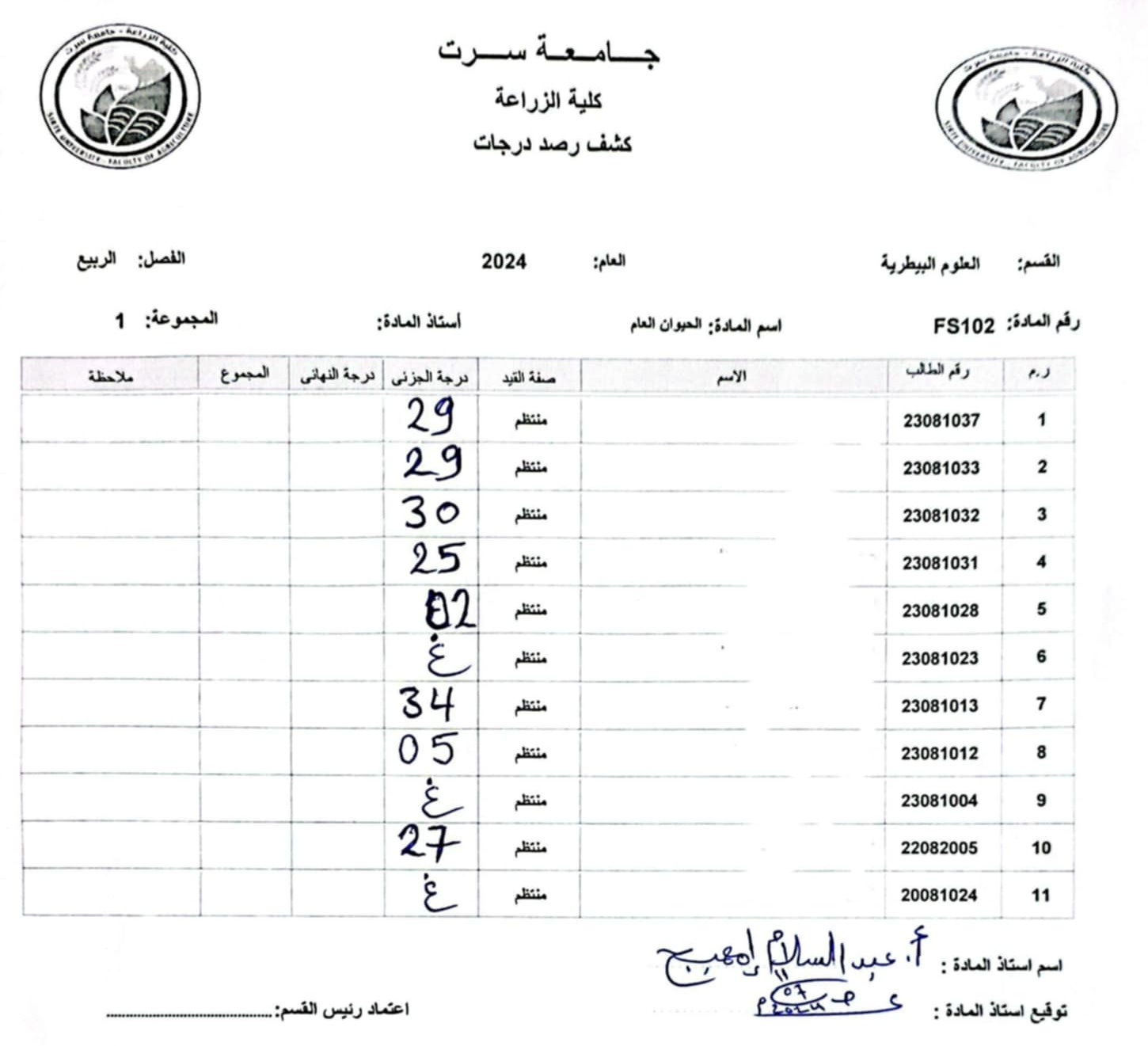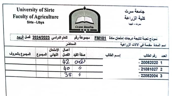 أعمال الفصل القسم العام و قسم العلوم البيطرية .