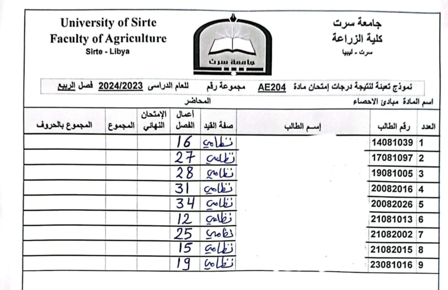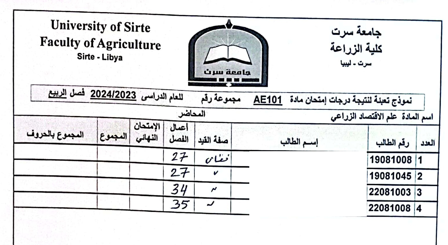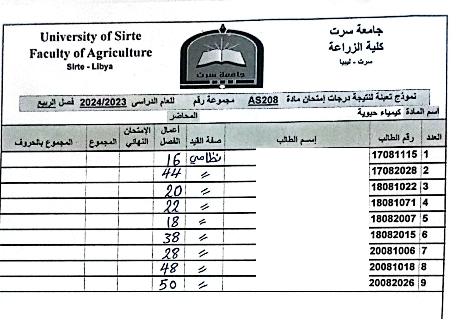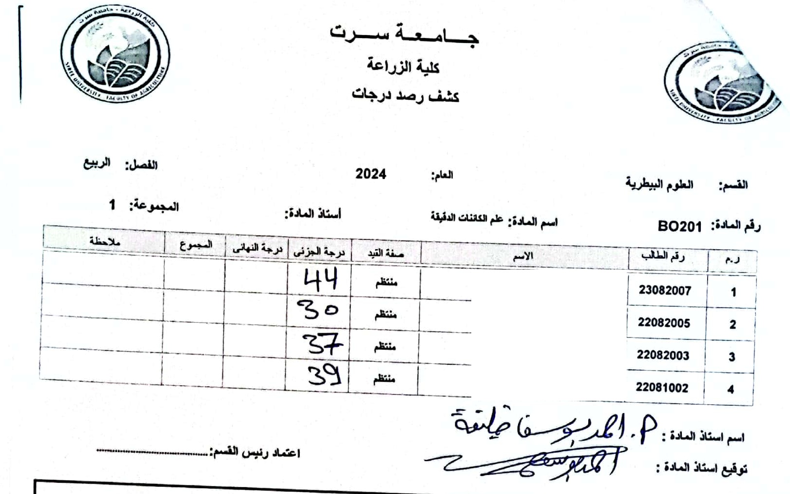أعمال الفصل القسم العام و قسم العلوم البيطرية .