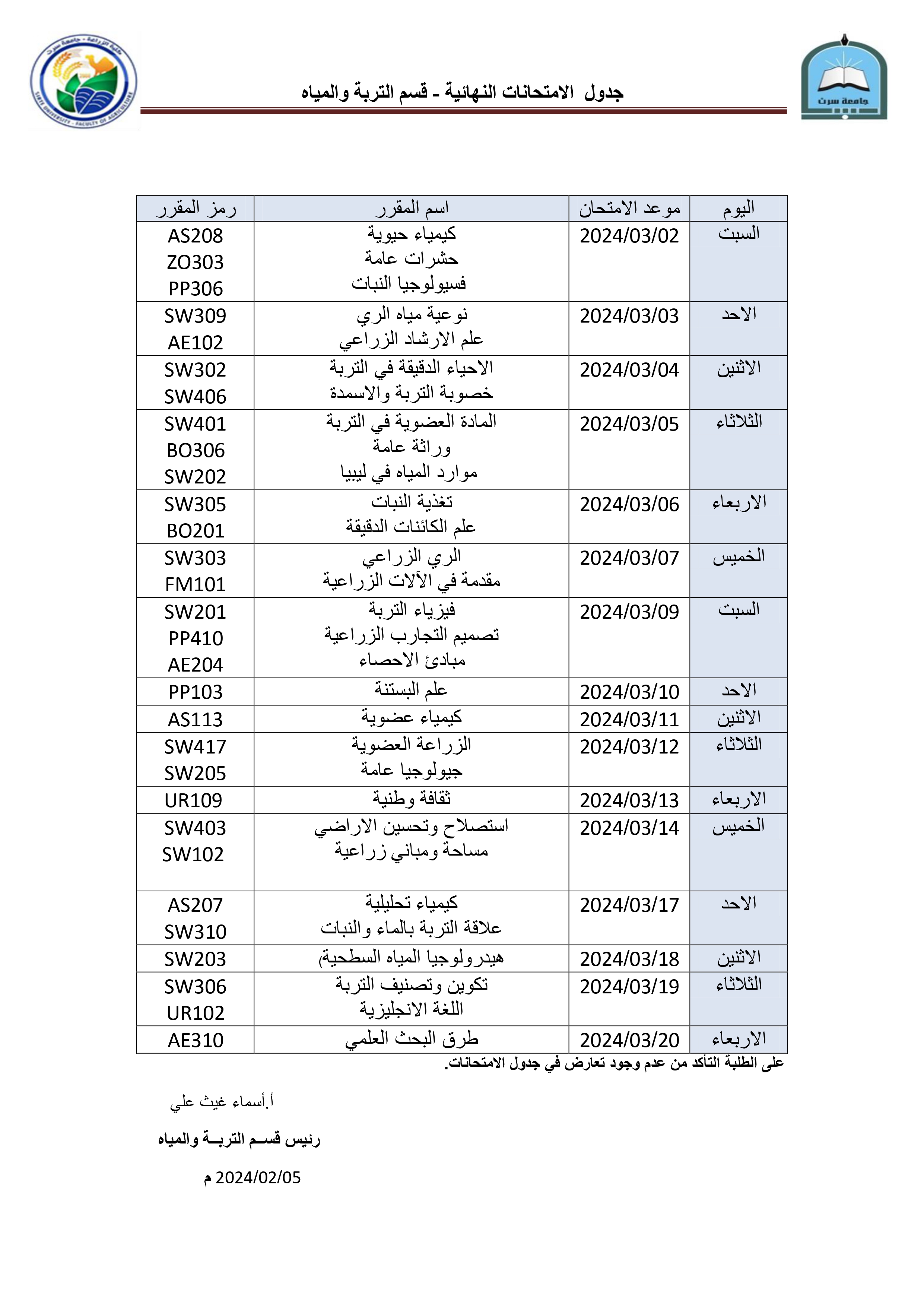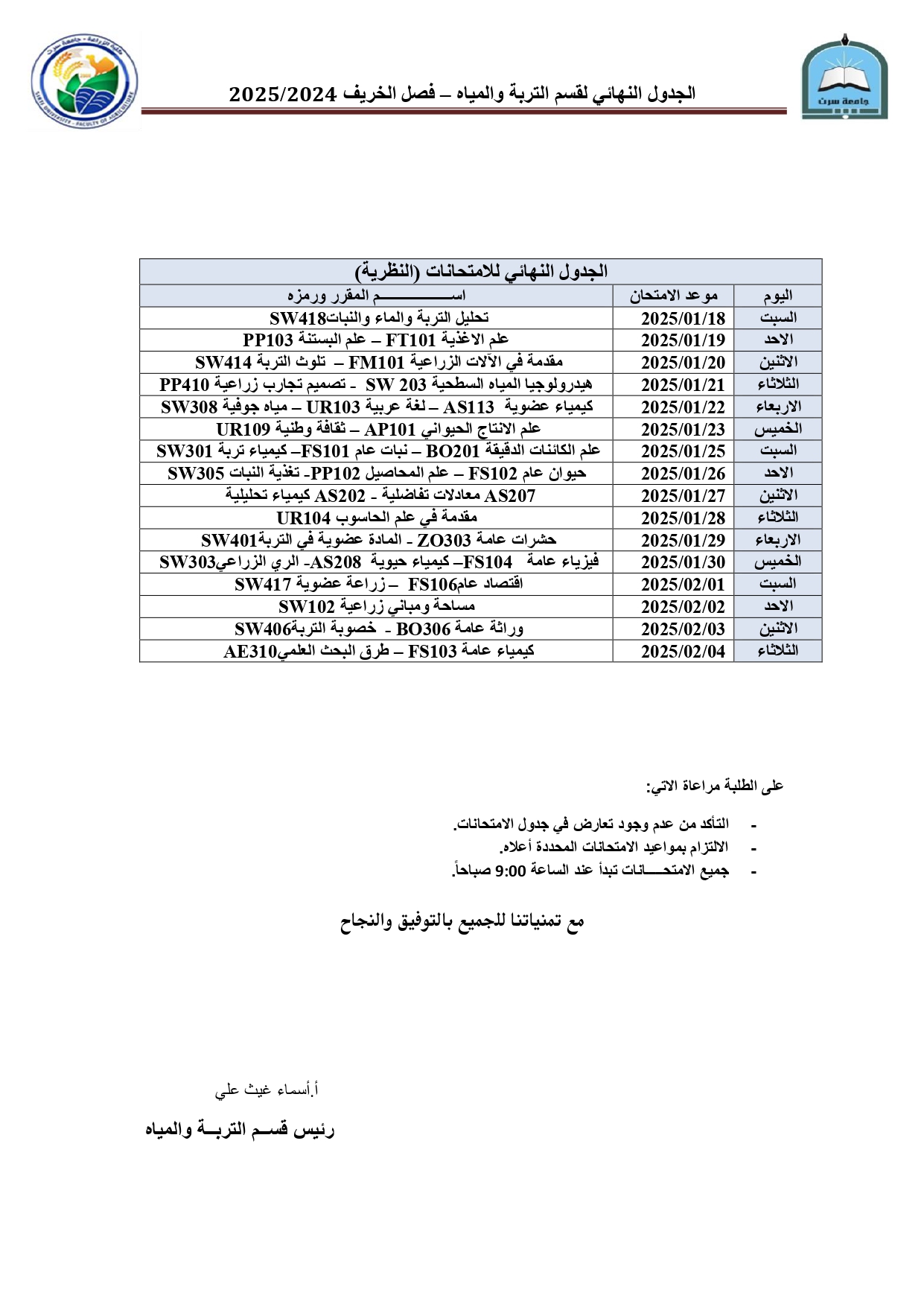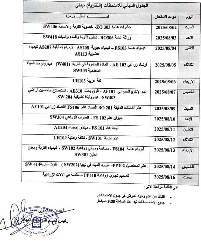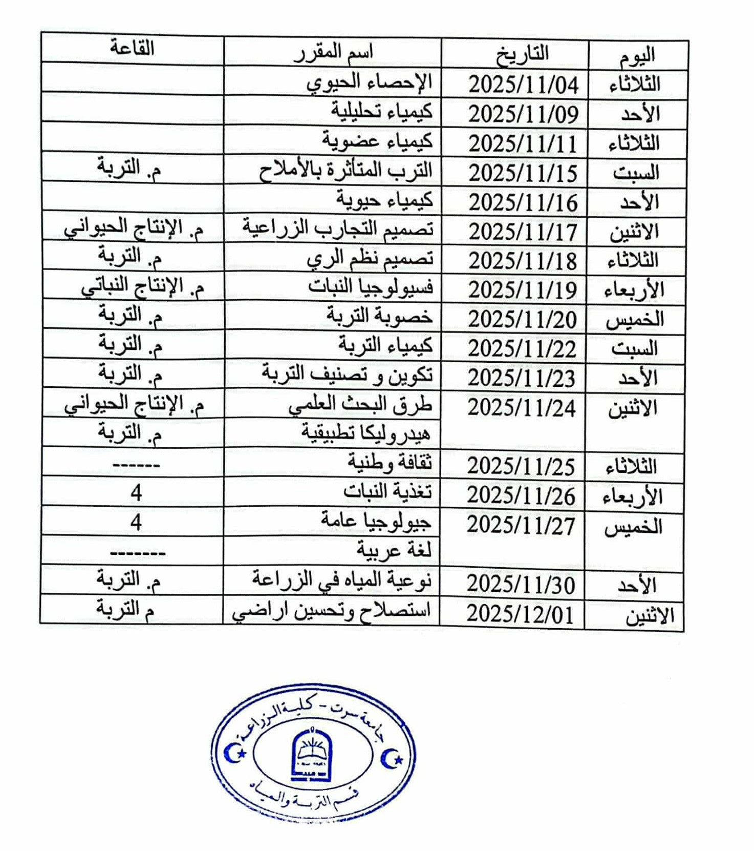 جدول الامتحانات النصفية لفصل الخريف2025-2026م