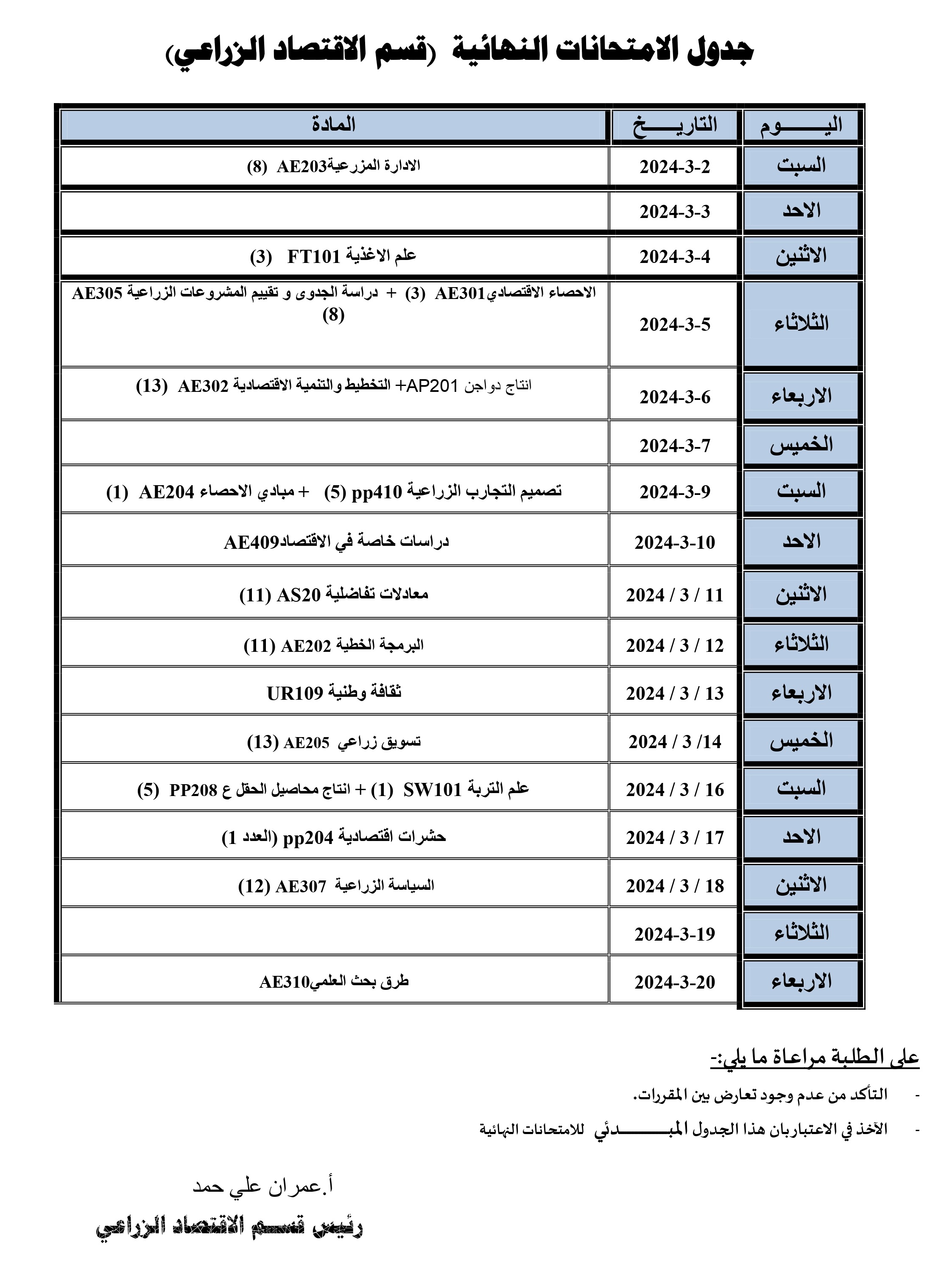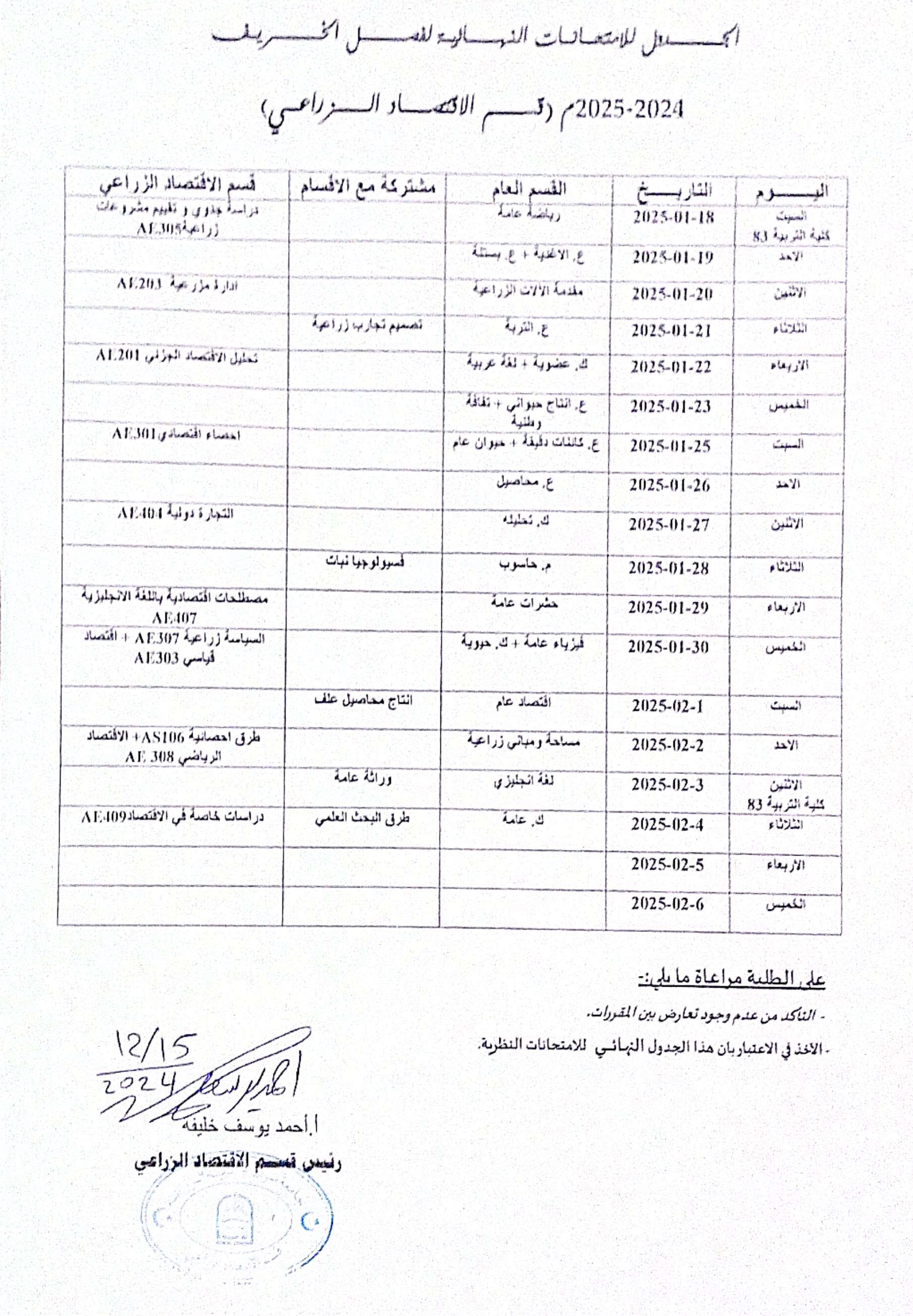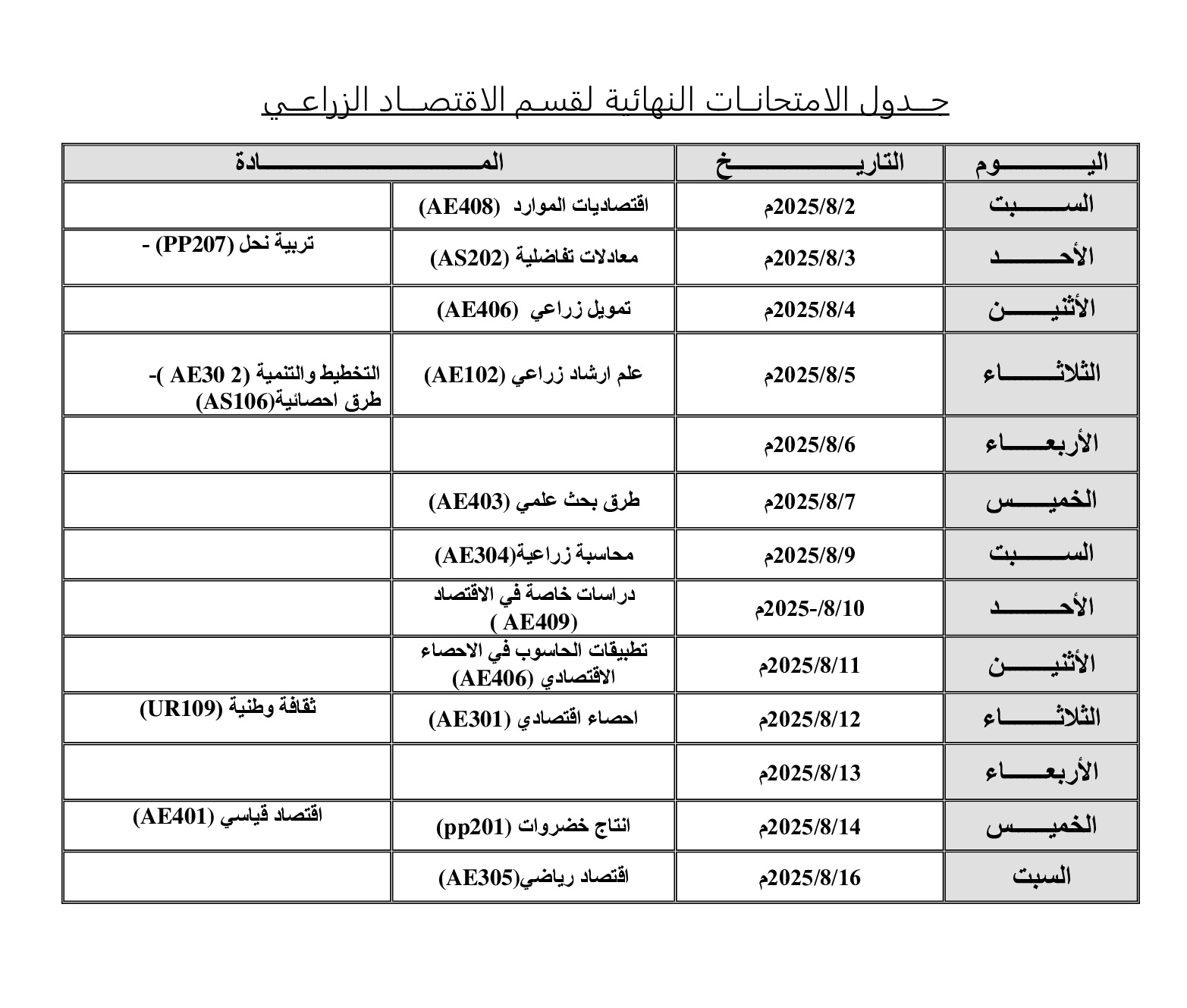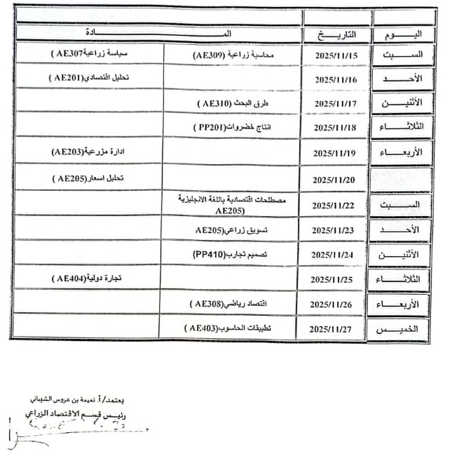 جدول الامتحانات النصفية لفصل الخريف 2025-2026م .