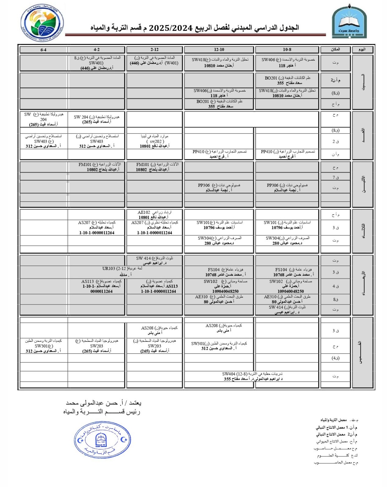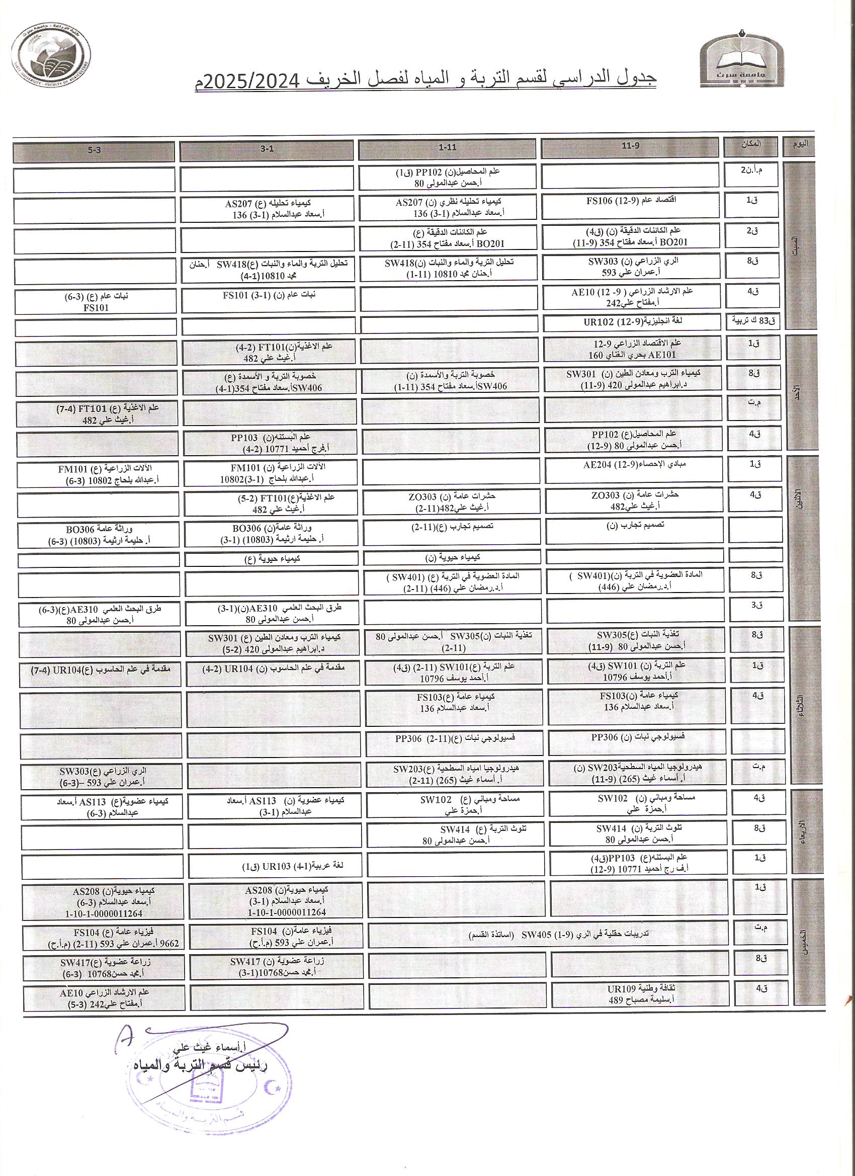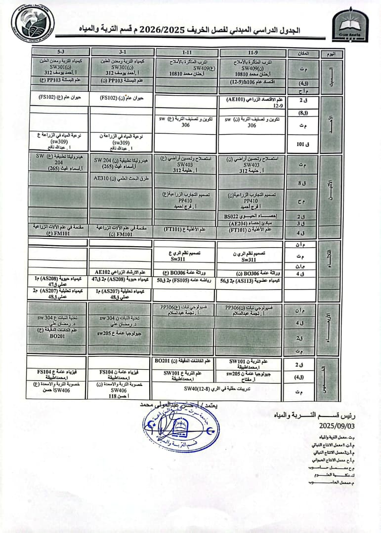 جدوال المحاضرات النظرية والعملية لفصل الخريف2025-2026 م.