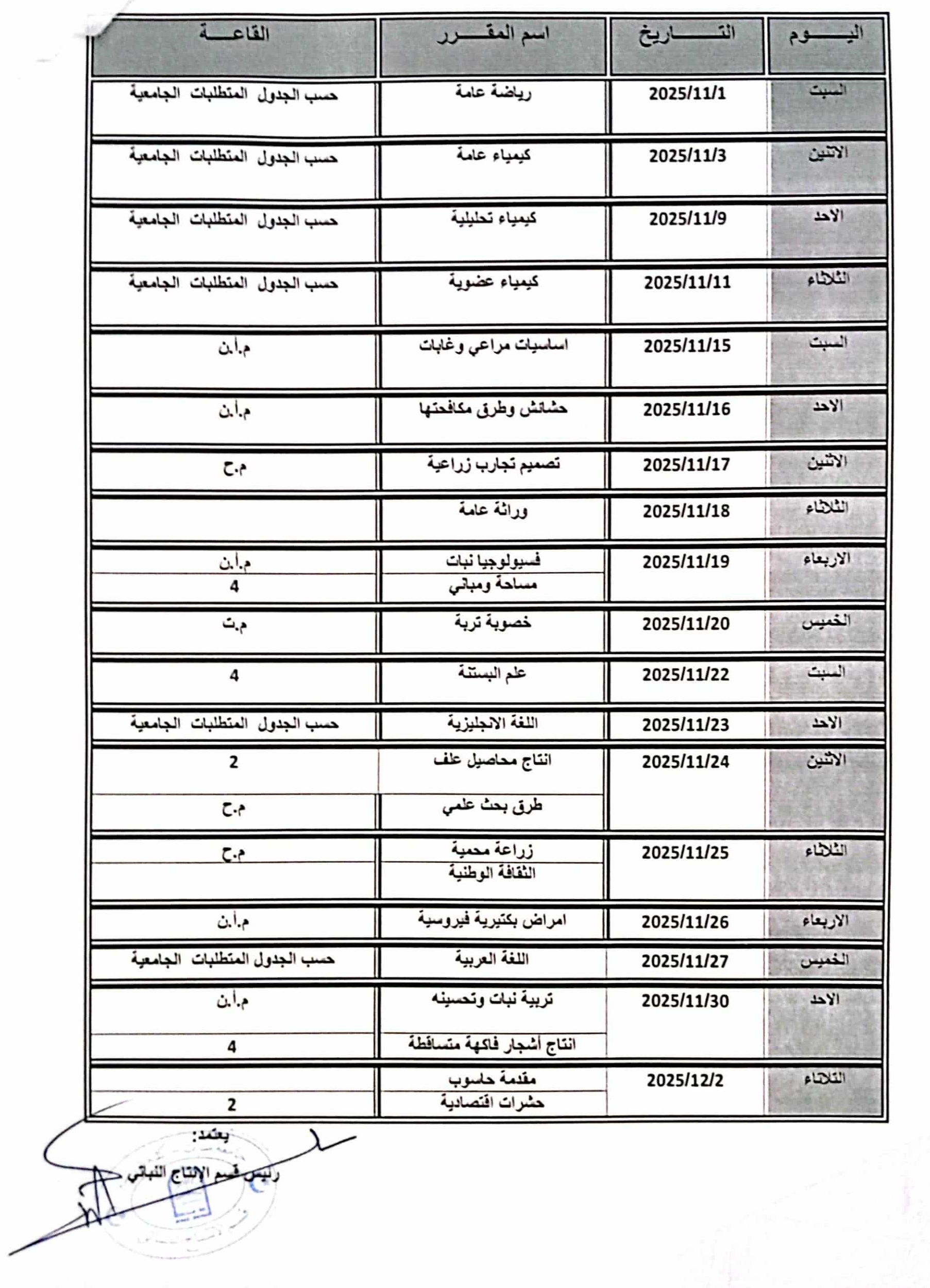 جدول الامتحانات النصفية لفصل الخريف 2025-2026م .