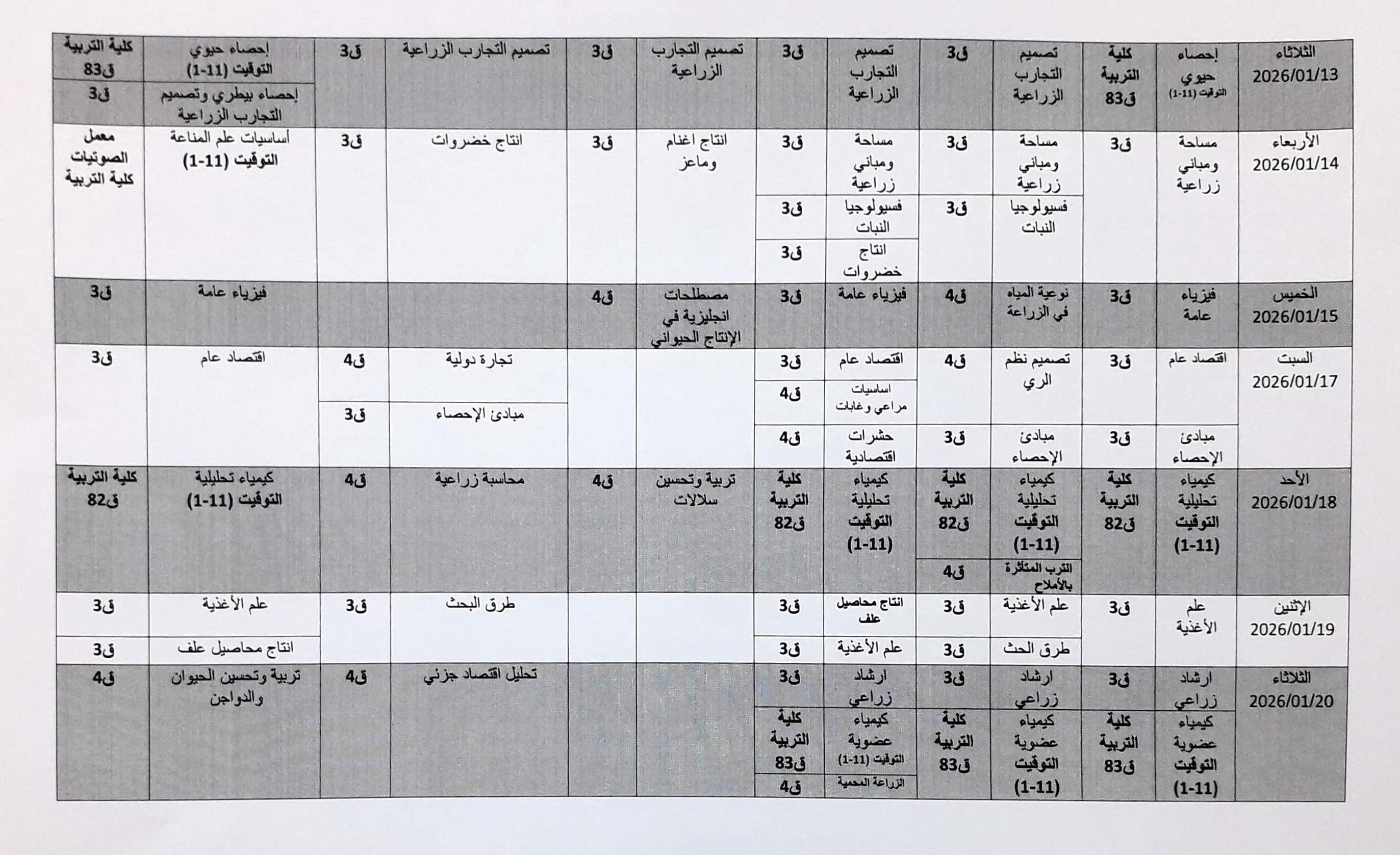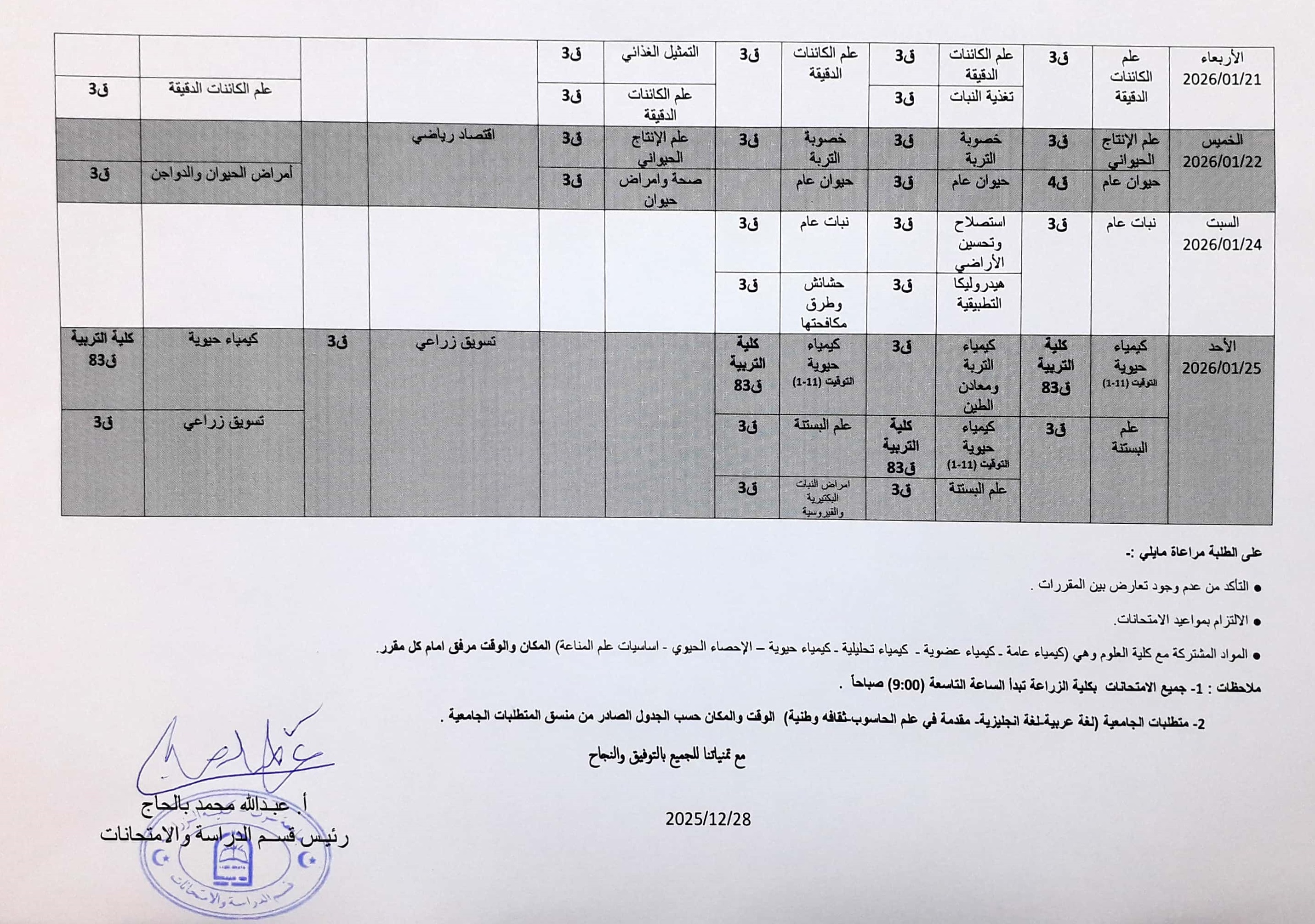 جدول الامتحانات النهائية لفصل الدراسي الخريف 2026/2025 م .