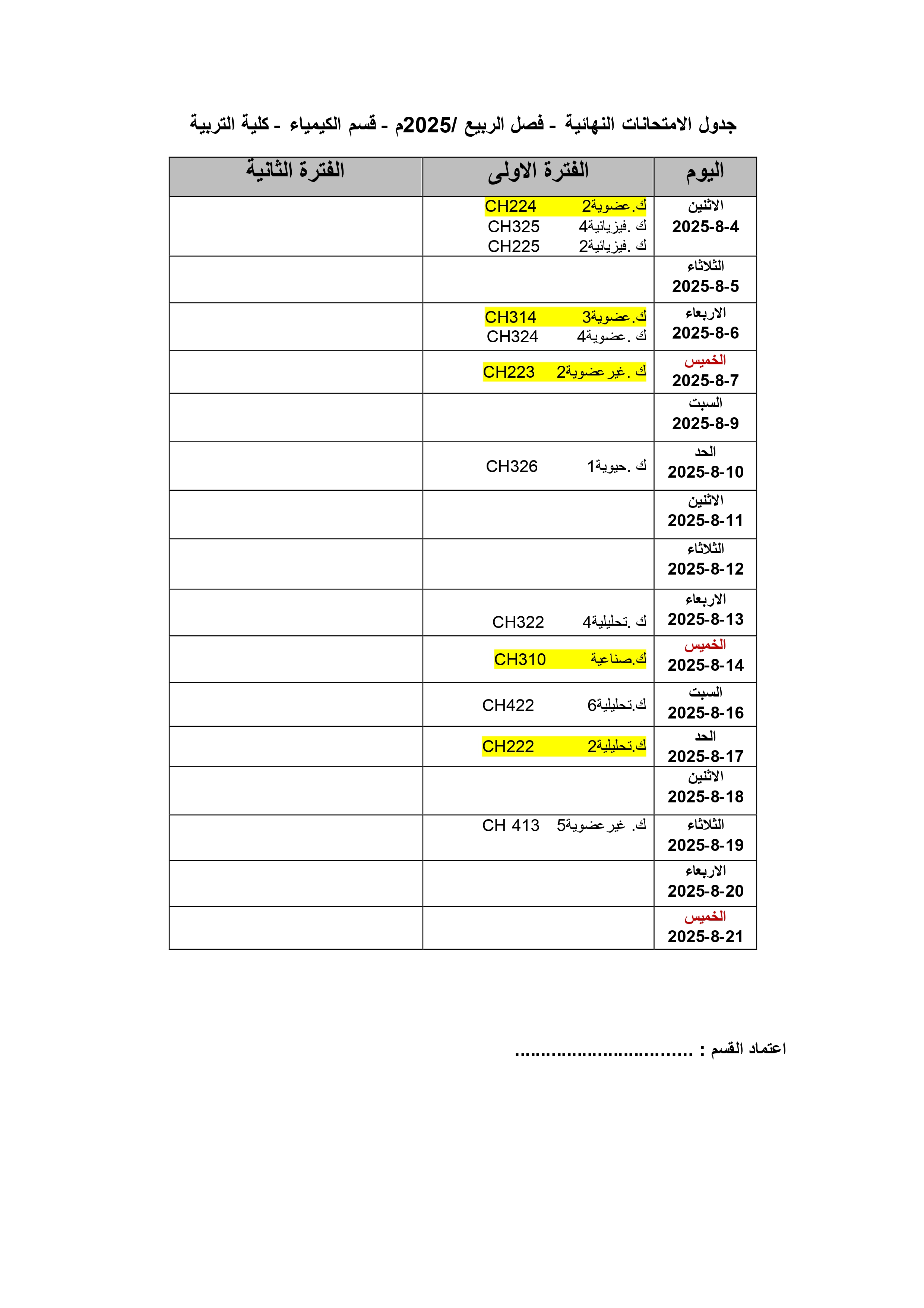 جدول الامتحانات