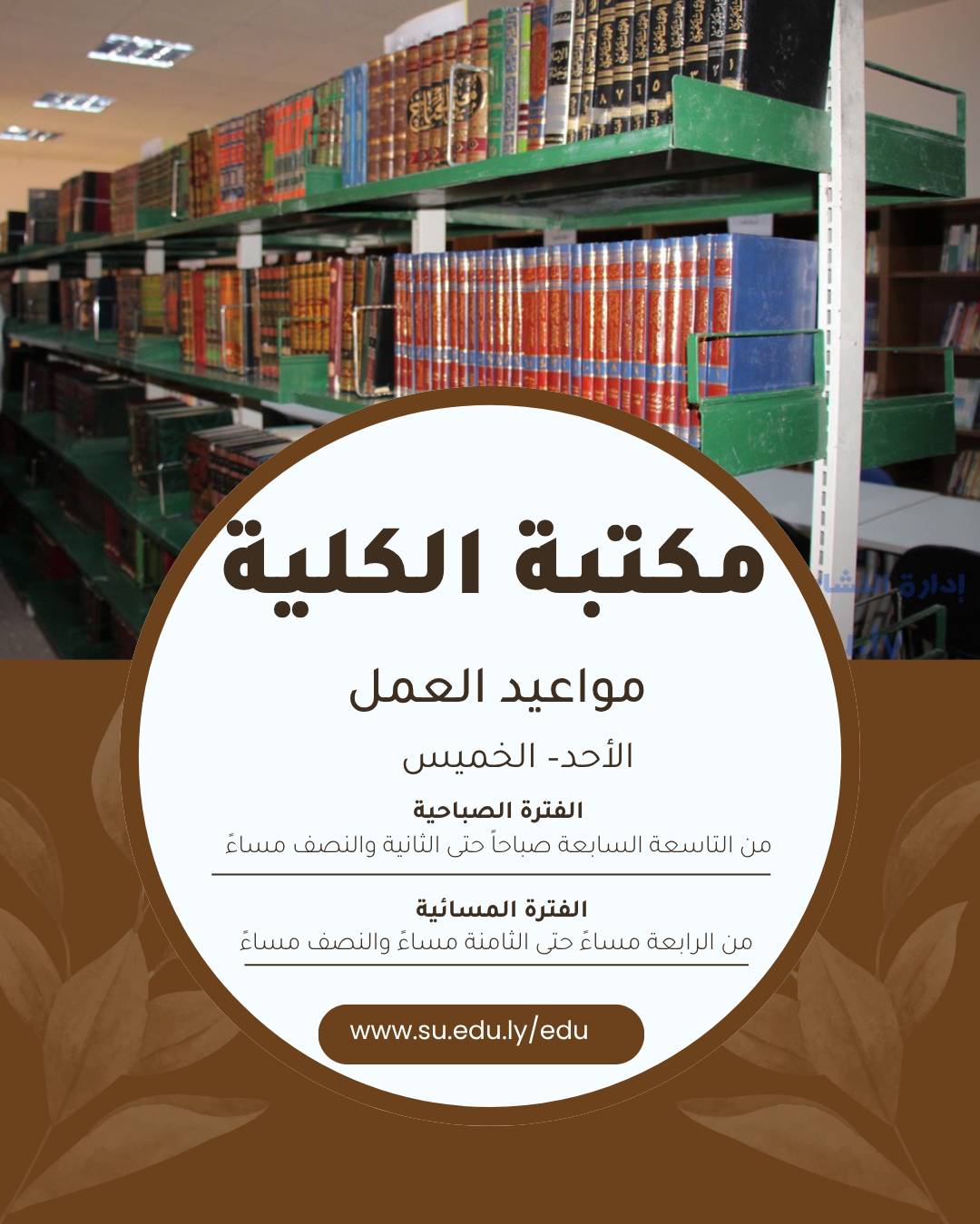 1.مكتبة الكلية حيث يوجد بها عدد من المراجع التي يستفيد منها الطالب خلال دراسته الجامعية و العليا مستقبلا.
