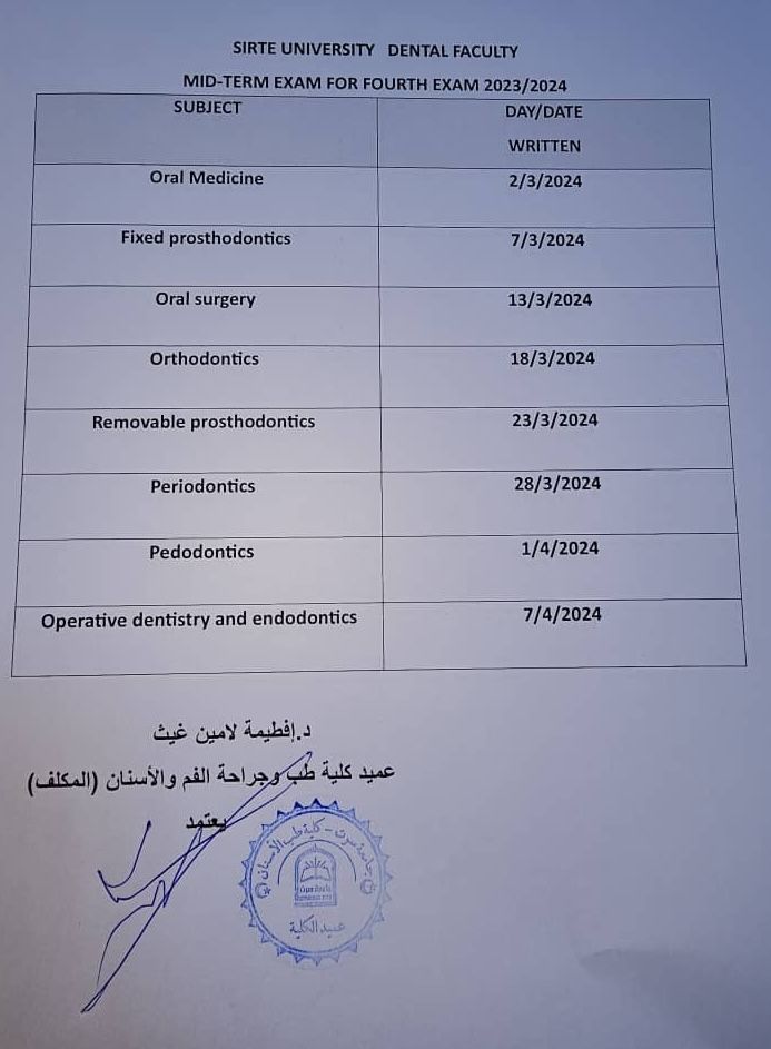 جدول الامتحانات النصفية للسنوات ( الأولى - الثانية - الثالثة - الرابعة )